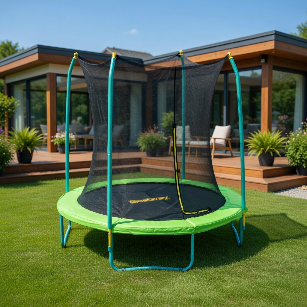 Батут — идеальное решение для активного отдыха на свежем воздухе! Он обеспечивает безопасность благодаря прочной защитной сетке и мягким опорам. Легкая сборка с помощью инструмента QuickSpring™ и устойчивость к погодным условиям делают его отличным выбором для игр. Превратите свой двор в место веселья и радости для детей!