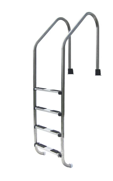 Забортная лестница DVN SL-415 (4 ступени) — надёжное решение для полностью заглублённых бассейнов. Изготовлена из полированной нержавеющей стали AISI-304, устойчива к коррозии и воздействию химии. Оснащена четырьмя противоскользящими ступенями и прочными поручнями, обеспечивает комфортный и безопасный спуск. Подходит для бетонных и композитных чаш, комплектуется крепежом.