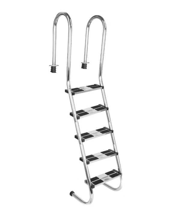 Набортная лестница S515 (5 ступеней) — надёжное и комфортное решение для бассейнов с узким бортом. Выполнена из полированной нержавеющей стали SS304, устойчивой к коррозии и влаге. Пологая конструкция, удобные поручни и прорезиненные ступени обеспечивают безопасный спуск. Простая установка на борт бассейна, в комплекте — весь необходимый крепёж и закладные элементы.