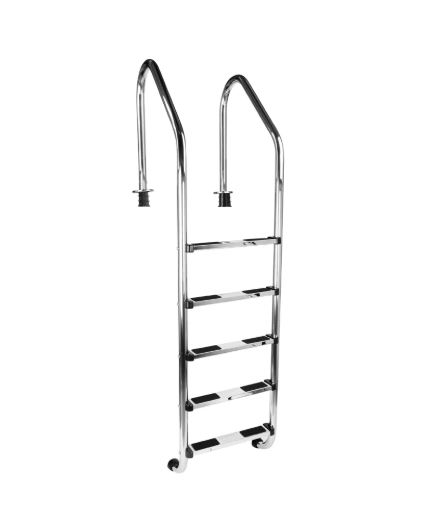 Забортная лестница DVN SL-515 (5 ступеней) — надёжный и безопасный спуск для полностью заглублённых бассейнов с узким бортом. Изготовлена из нержавеющей стали AISI-304, устойчива к влаге и химическим реагентам. Пять противоскользящих ступеней и прочные поручни обеспечивают комфорт и безопасность. В комплекте — все необходимые крепёжные элементы для установки.