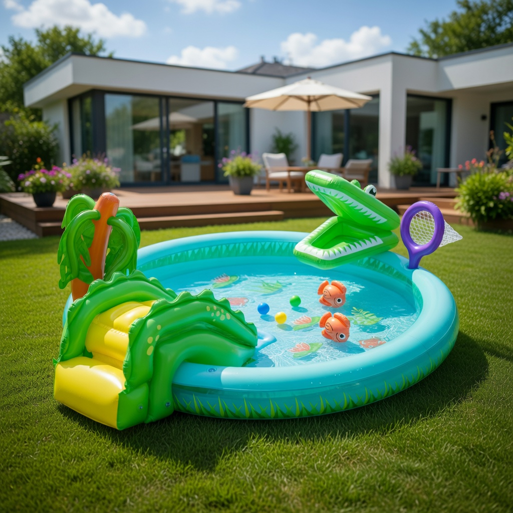 В комплекте: бассейн, рыболовная сеть, 2 рыбки, 3 мячика, ремонтная заплатка.